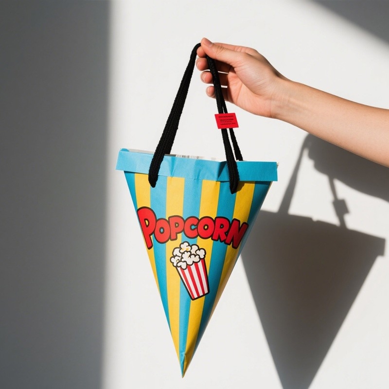 Das dreieckige Kegeldesign ist das Highlight dieses Popcornbechers; es macht das Popcornessen unterhaltsamer und weckt effektiv die Aufmerksamkeit und das Interesse der Kunden, wodurch es sich ideal für den Markenaufbau eignet.